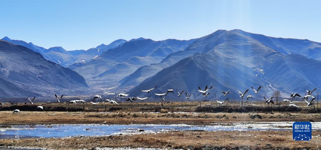 唐嘎鄉(xiāng)位于拉薩市達(dá)孜區(qū)東北部,這里每年冬季都會(huì)迎來黑頸鶴、斑頭雁、赤麻鴨等候鳥。這些珍稀鳥類時(shí)而在空中盤旋,時(shí)而棲息在水邊,營(yíng)造出一幅生機(jī)盎然的冬季畫卷。