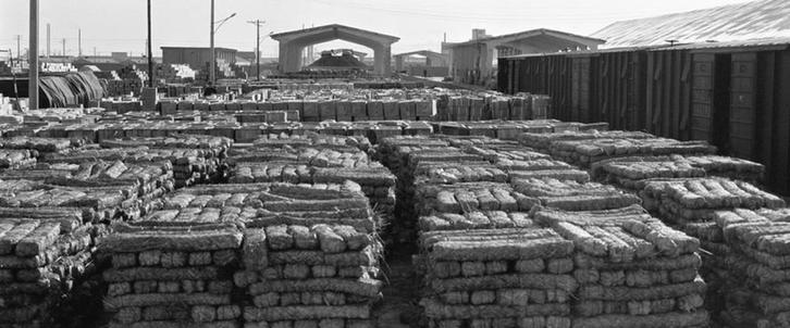 1989年2月,湖南、云南、四川等省專門為西藏人民生產(chǎn)的民族磚茶堆放在青海省格爾木火車站,等待西藏運(yùn)輸車隊(duì)前來裝運(yùn)。