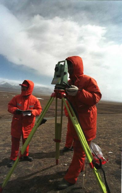 2001年4月,鐵道部第一設(shè)計(jì)院的勘測(cè)人員在海拔近5000米的四道梁加緊進(jìn)行青藏鐵路的勘測(cè)工作。在國(guó)務(wù)院批準(zhǔn)修建青藏鐵路后,鐵道部第一設(shè)計(jì)院的上千名勘測(cè)人員克服惡劣的自然條件,為青藏鐵路早日開工夜以繼日地工作。