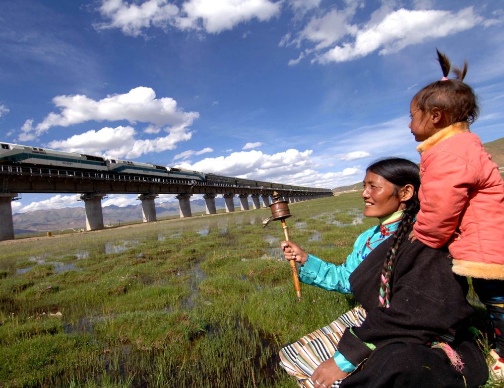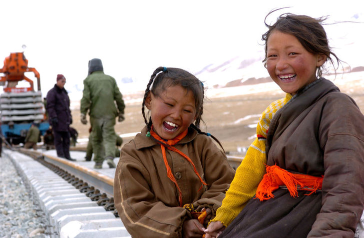 青藏鐵路的建設(shè)工地成為了附近居民最大的關(guān)注點(diǎn),老鄉(xiāng)們來到工地東瞅瞅、西瞧瞧,好奇地摸摸鐵軌,或者甚至拉著工人們問問這、問問那——盡管很多時(shí)候,由于語言不通的緣故,他們并不能夠了解對(duì)方在說什么。在故鄉(xiāng)人的臉上,我看到了對(duì)未來變化的憧憬,以及對(duì)鐵路建成越來越急迫的渴望。