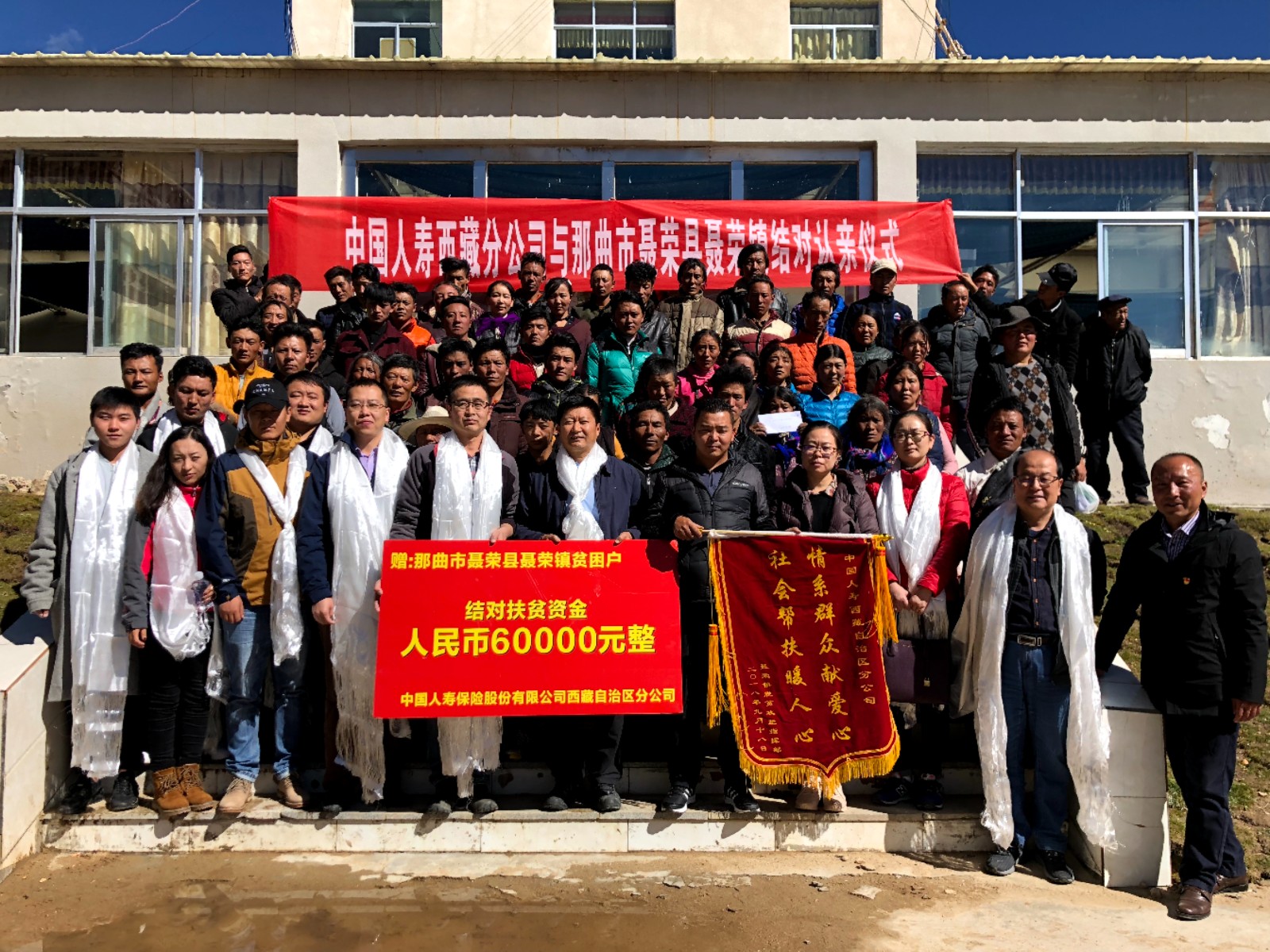 圖為中國人壽西藏分公司干部職工與那曲市聶榮縣聶榮鎮(zhèn)開展結(jié)對認(rèn)親幫扶活動(dòng)。