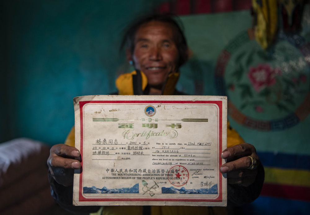 和下了山后日子過(guò)得風(fēng)生水起的多吉不同,格桑傳奇的經(jīng)歷,并沒(méi)有給生活帶來(lái)什么本質(zhì)的改變。格桑并沒(méi)有出名,在他看來(lái),登頂?shù)慕?jīng)歷除了能證明自己身體好,也說(shuō)不出其他意義。登頂照片搬家的時(shí)候就找不到了,除了一張登頂證書,還留下的紀(jì)念品,就是“冬天放牧?xí)r穿著暖和的連體羽絨服”。