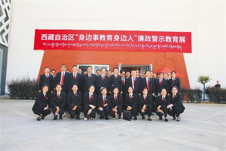 圖為2022年7月8日,自治區(qū)高級(jí)人民法院干警參觀西藏自治區(qū)“身邊事教育身邊人”廉政警示教育展合影。