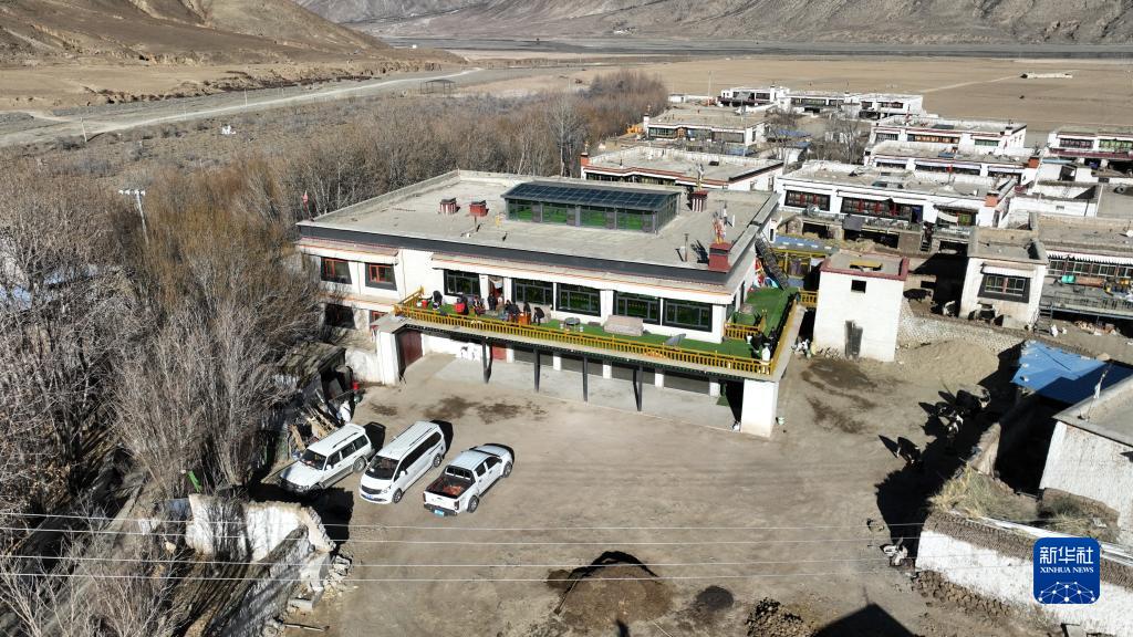 西藏日喀則市拉孜縣扎西宗鄉(xiāng)雜村次旦老人家的二層小樓(1月22日攝,無(wú)人機(jī)照片)。新華社記者 晉美多吉 攝