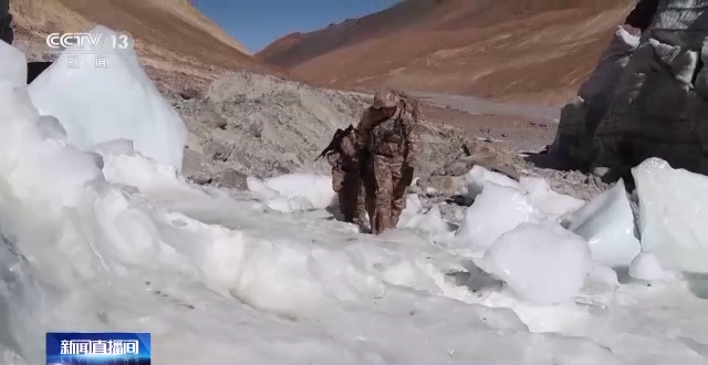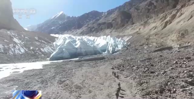 經(jīng)過一個(gè)多小時(shí)的車行顛簸,巡邏分隊(duì)到達(dá)了車行道路的終點(diǎn),接下來的徒步巡邏才是此次巡邏挑戰(zhàn)的開始。翻越海拔6000米的冰川,這對(duì)于常年駐守的官兵們來說也是極大的挑戰(zhàn),行進(jìn)途中稍不注意就會(huì)摔倒在地,即便是經(jīng)驗(yàn)豐富的老兵走在上面也時(shí)常手腳并用才能前行。