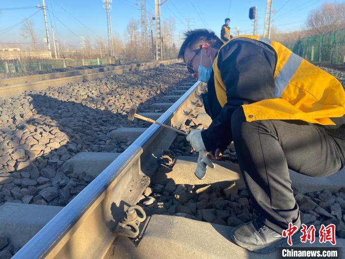 “春運期間,正是鋼軌折斷多發(fā)期,一定要仔細檢查線路的高低狀態(tài),一旦有異常必須立刻記錄解決,決不能馬虎?!弊叩骄€路防斷重點區(qū)段時,中國鐵路青藏集團有限公司西寧工務(wù)段湟源線路車間檢查工區(qū)工長侯鵬俯身趴在鋼軌上,仔細觀察并叮囑,锃亮的鋼軌頂面反射著刺眼的白光,在他的臉上一閃一閃。