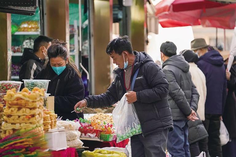 記者注意到,沖賽康批發(fā)市場一樓干果區(qū)吸引了不少市民駐足購買。“家人都喜歡瓜子、開心果等干果,所以就多買點?!笔忻裱胱谛χf,“每年藏歷新年前,我們都會來買年貨,這里品種多,價格還實惠?!庇浾咦咴L發(fā)現(xiàn),今年的年貨市場,瓜子、紅棗、葡萄干、柿餅、開心果、核桃、腰果、夏威夷果等是該市場最受歡迎的品類。