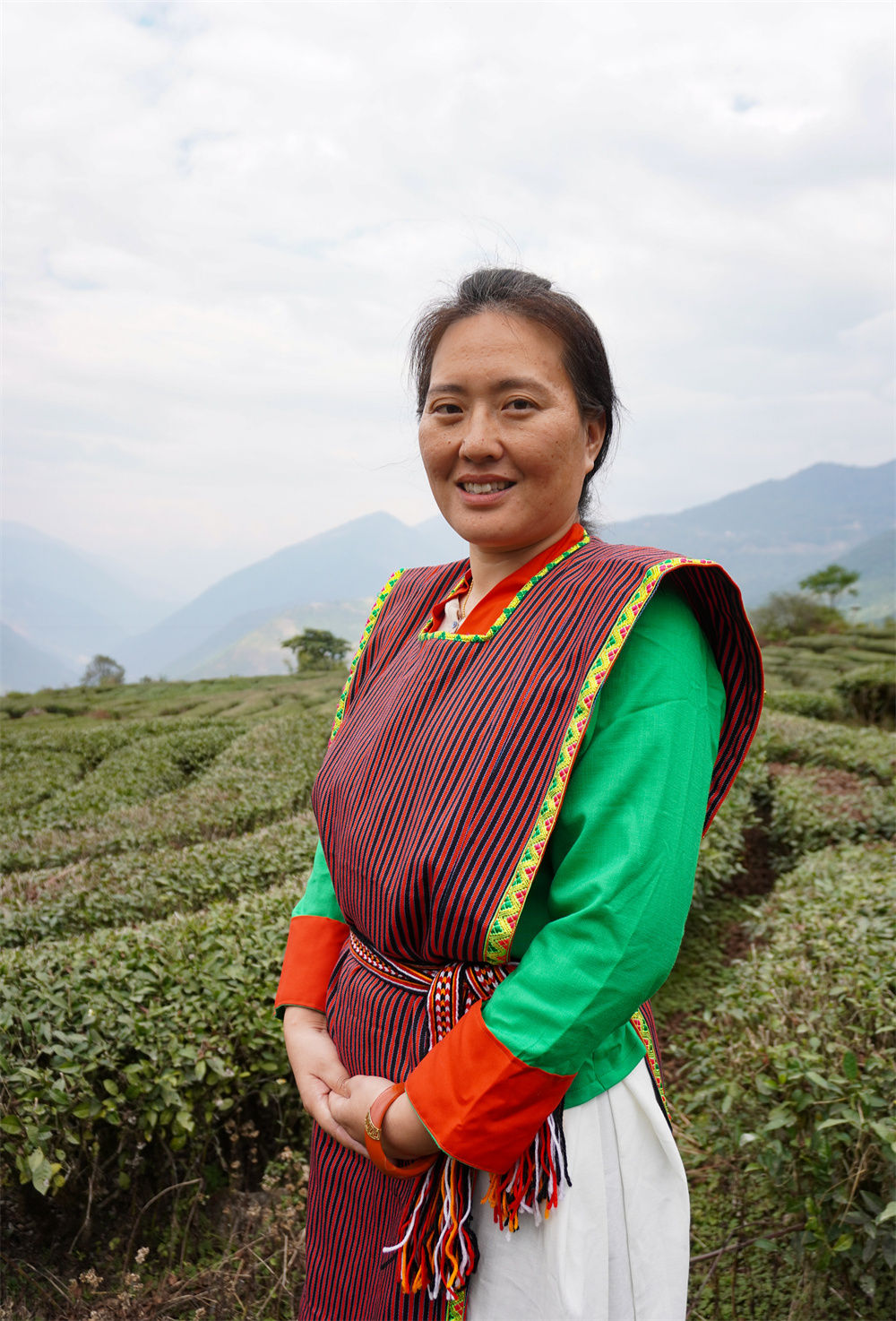 白瑪曲珍在西藏墨脫縣一茶園調(diào)研當(dāng)?shù)禺a(chǎn)業(yè)情況(2月20日攝)。新華社記者 王澤昊 攝