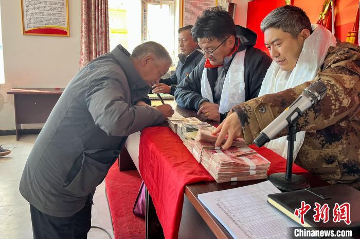 圖為2月19日,西藏那曲安多縣帕那鎮(zhèn)申格卡崗村牧民分紅。中國(guó)鐵路青藏集團(tuán)有限公司 供圖