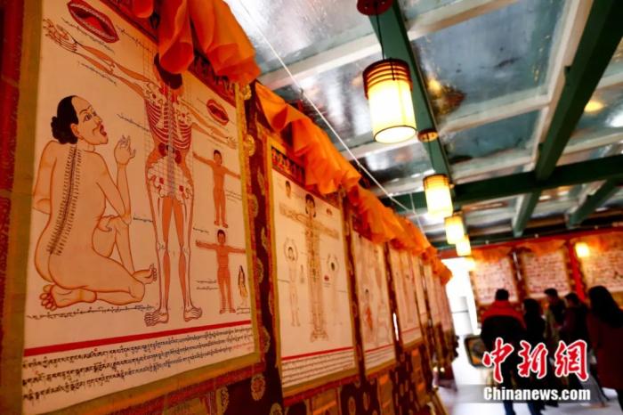 《四部醫(yī)典》唐卡在北京展出。陸欣 攝
