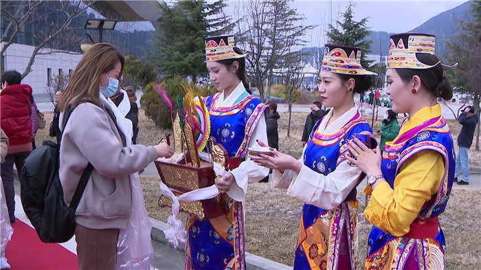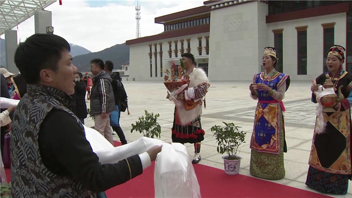 在歡迎儀式上,漂亮的工布姑娘唱起了歌,帥氣的工布小伙端起了香醇的青稞酒,副市長段剛輝為游客們獻上潔白的哈達,對遠道而來的客人表示熱烈的歡迎和誠摯的祝福,并在致辭中向游客們介紹了林芝的自然風光和民俗文化。