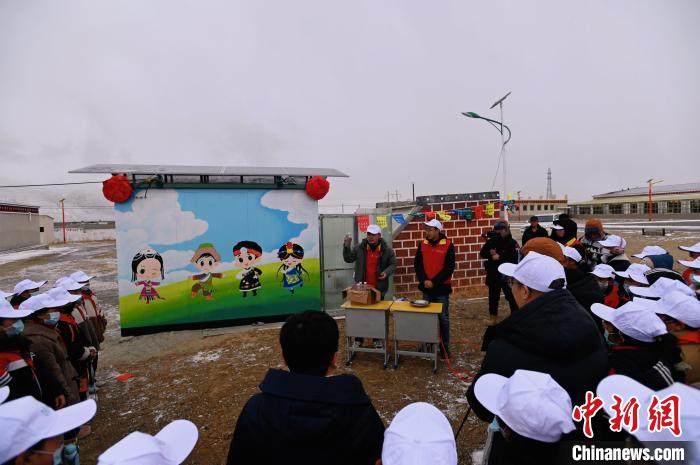 這份“禮物”約有半個(gè)標(biāo)準(zhǔn)集裝箱那么大,它的屋頂裝有幾塊太陽能光伏板,這間鐵皮小屋從杭州出發(fā),途徑安徽、河南、陜西、甘肅、青海,跋涉近4000公里來到那曲,為學(xué)校師生帶來了干凈的飲用水。