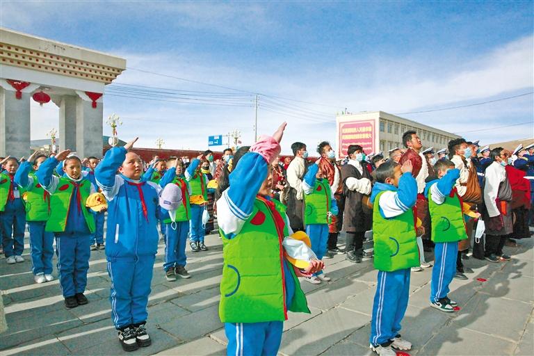 28日,西藏大學、拉薩市教育局組織學生開展“升國旗、唱國歌”活動,并觀看《復興之路》和《人格的力量——中國共產(chǎn)黨人的家國情懷》兩個直播課堂,革命先烈為實現(xiàn)國家解放和民族復興前仆后繼、視死如歸的英雄事跡深深打動了每一名學生。西藏大學學生向秋雨說:“我們要以史為鑒,開創(chuàng)未來,扎實學好專業(yè)知識,維護祖國統(tǒng)一,鑄牢中華民族共同體意識,讓青春之花在祖國最需要的地方絢麗綻放。”
