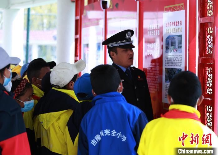 27日下午,60多名學生在老師帶領(lǐng)下走進吉隆邊檢站警營,師生在移民管理警察引導下參觀警營文化長廊、警史館和閱覽室,觀摩警棍、盾牌、槍支等警用裝備,觀看西藏發(fā)展變化教育片,聆聽新舊西藏對比相關(guān)故事。