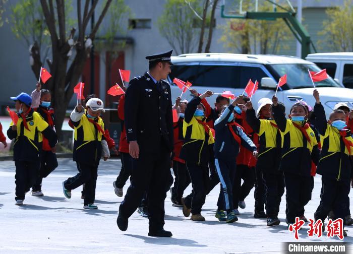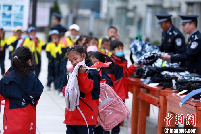 移民管理警察為學生發(fā)放書包,鼓勵學生好好學習,將來成為棟梁之材?!⌒じ毁F 攝