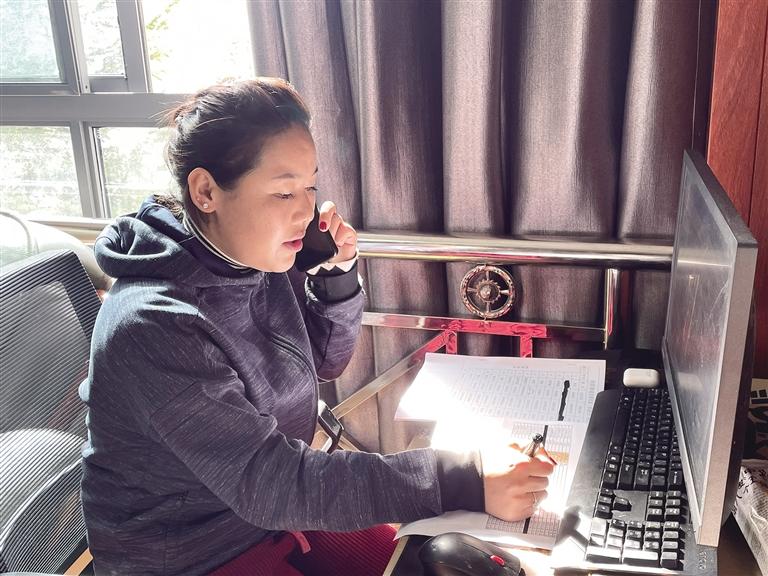 拉薩市反詐中心預警勸阻專班工作人員正在撥打勸阻電話。譚瑞華攝