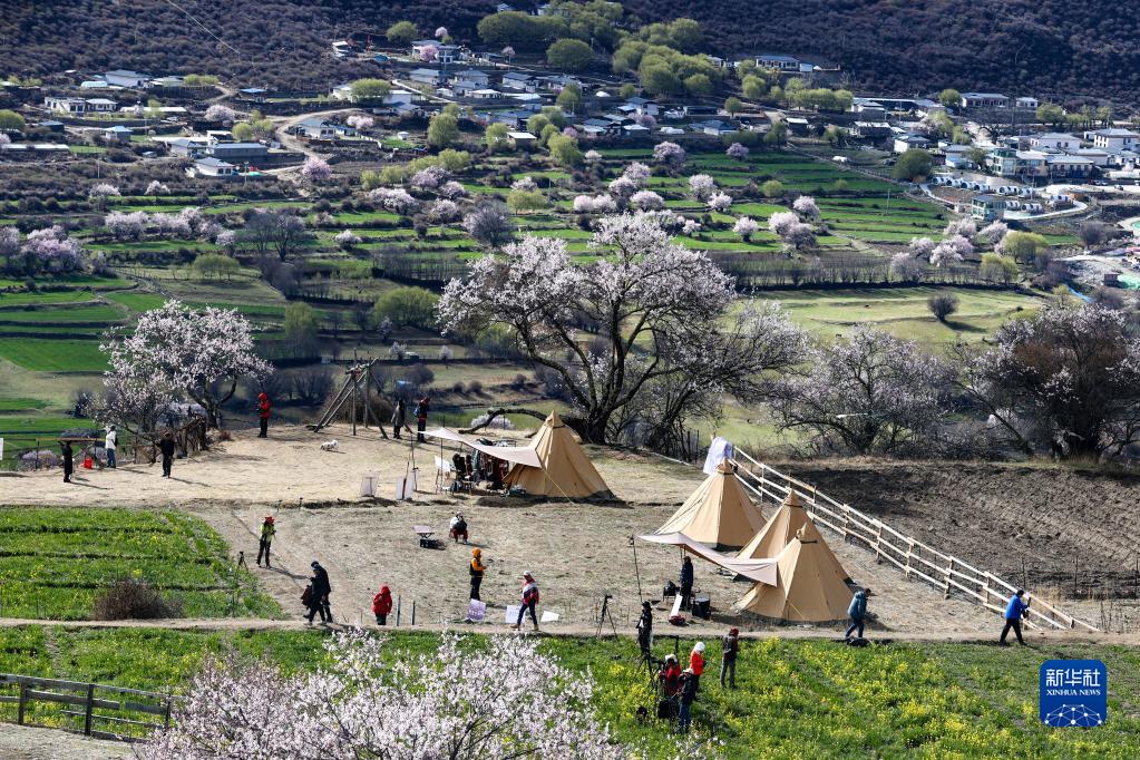 俯瞰索松村的桃花林(4月5日攝)。新華社記者 姜帆 攝