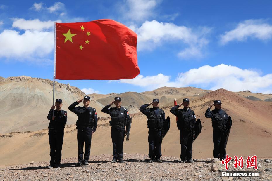 近日,西藏阿里邊境管理支隊扎西崗邊境派出所組織民警和護邊員通過乘車巡邏和徒步巡邏相結(jié)合的方式,前往海拔4800米的“守邊固邊第一村”——典角村古格川執(zhí)勤點巡邏,經(jīng)過一個小時的車巡和一個小時的徒步巡邏,民警到達了古格川執(zhí)勤點。通過巡邏,及時掌握了邊境一線情況,確保了邊境轄區(qū)安全穩(wěn)定。圖為民警與國旗合影。郭遠敬 攝
