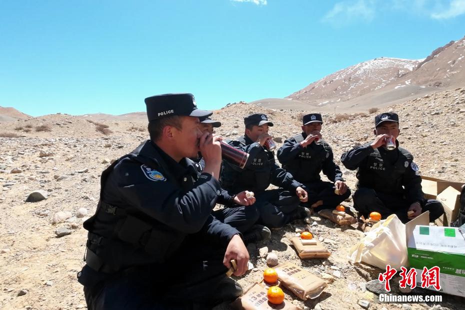 近日,西藏阿里邊境管理支隊扎西崗邊境派出所組織民警和護邊員通過乘車巡邏和徒步巡邏相結(jié)合的方式,前往海拔4800米的“守邊固邊第一村”——典角村古格川執(zhí)勤點巡邏,經(jīng)過一個小時的車巡和一個小時的徒步巡邏,民警到達了古格川執(zhí)勤點。通過巡邏,及時掌握了邊境一線情況,確保了邊境轄區(qū)安全穩(wěn)定。圖為移民管理警察巡邏途中休息。郭遠敬 攝