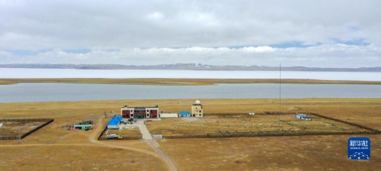 俯瞰中國科學(xué)院納木錯(cuò)多圈層綜合觀測研究站(無人機(jī)照片,4月13日攝)。新華社記者 姜帆 攝