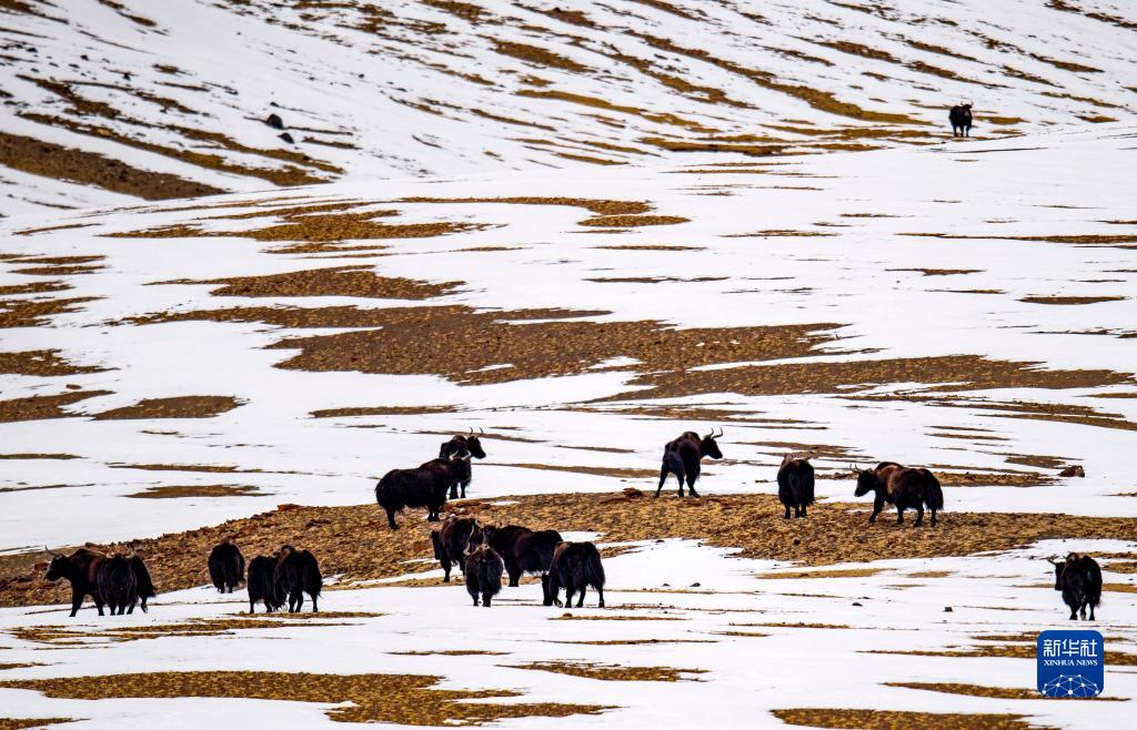 這是在羌塘國家級(jí)自然保護(hù)區(qū)那曲市雙湖縣區(qū)域內(nèi)拍攝到的成群的野牦牛(4月17日攝) 。新華社記者 姜帆 攝