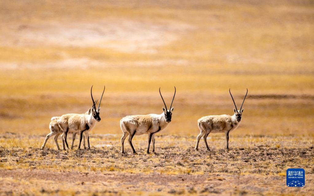 這是在羌塘國家級(jí)自然保護(hù)區(qū)那曲市雙湖縣區(qū)域內(nèi)拍攝到的藏羚羊(4月15日攝) 。新華社記者 姜帆 攝