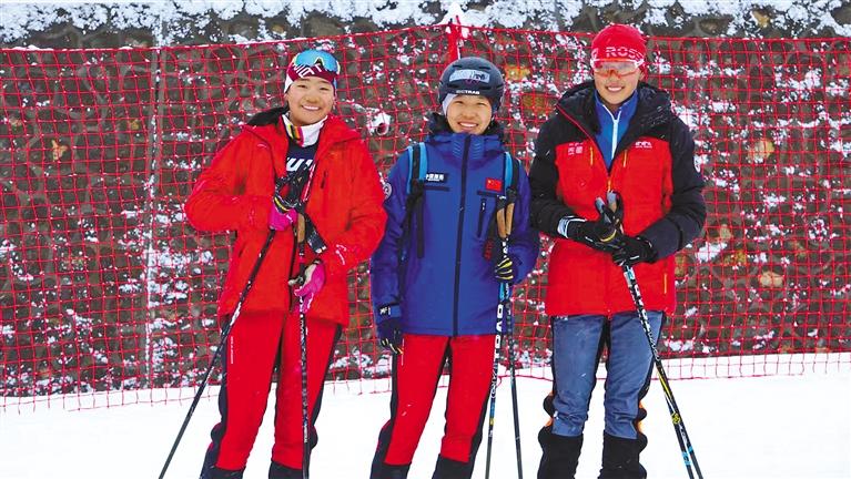 圖為玉珍拉姆(中)與好朋友索朗曲珍(左)、扎西旦珍(右)在雪地中合影。 本報(bào)記者 鄭璐 曉勇 袁海霞 攝