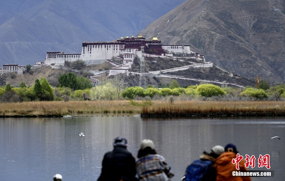 5月1日,市民游客在拉魯濕地欣賞布達(dá)拉宮。