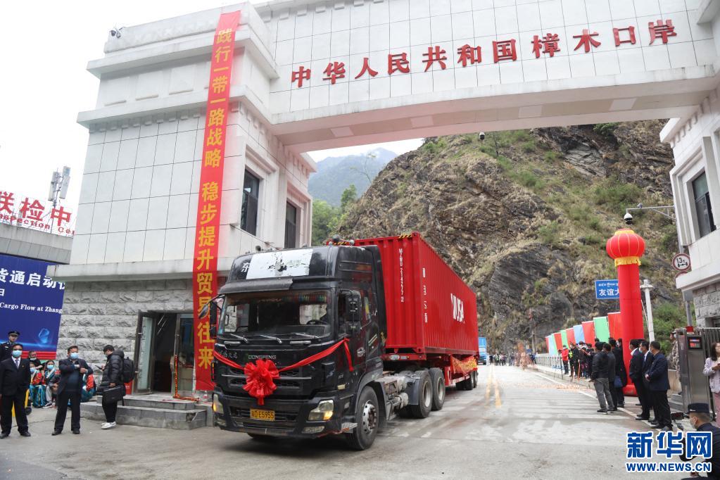 圖為載有貨物的車輛從樟木口岸入境(5月1日攝)。 鄒興國 攝