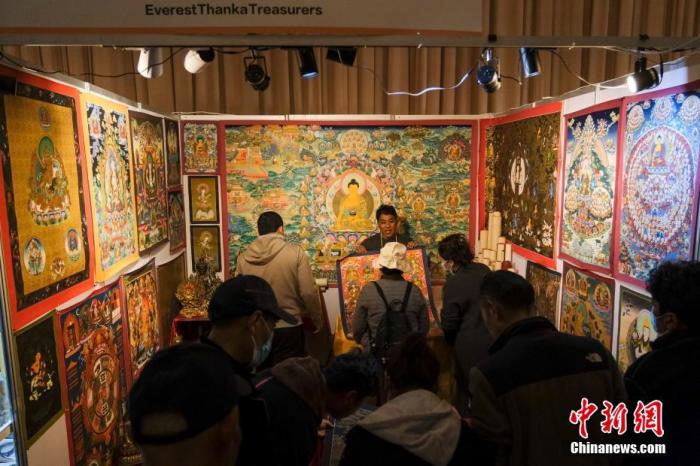 5月4日,西藏(拉薩)中外商品展銷會(huì)現(xiàn)場的唐卡展銷位。據(jù)西藏自治區(qū)外經(jīng)貿(mào)協(xié)會(huì)工作人員介紹,展銷會(huì)從4月29日至5月4日舉行,共有印度、尼泊爾、巴基斯坦、伊朗、塔吉克斯坦、不丹及阿富汗7個(gè)國家的84名外籍人員攜本國特色產(chǎn)品參展。中新社記者 江飛波 攝