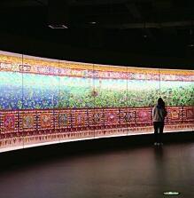 唐卡藏語意為“卷軸畫”,常見的唐卡作品長寬都在1米左右,這幅長618米的巨幅唐卡尺寸之大,實(shí)屬罕見。整幅作品由金銀、珊瑚、瑪瑙、珍珠、綠松石等純天然礦物配制的顏料繪制而成,上下裝飾的堆繡圖案達(dá)3000多種。藏文化博物院用四層整層對(duì)其進(jìn)行了完整展示,蜿蜒曲折的展線讓人仿佛徜徉于歷史長河。