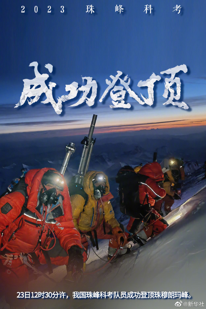 23日12時(shí)30分許,2023年珠峰科考13名登頂隊(duì)員成功登頂?shù)厍蛑畮p珠穆朗瑪峰。之后,他們將完成峰頂雪冰樣品采集等重要科考任務(wù)。