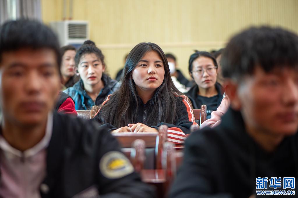 活動(dòng)現(xiàn)場(chǎng)拉薩市人民檢察院檢察官卓瑪為西藏藏醫(yī)藥大學(xué)生宣講法律知識(shí)。(新華社記者 旦增尼瑪曲珠 攝)