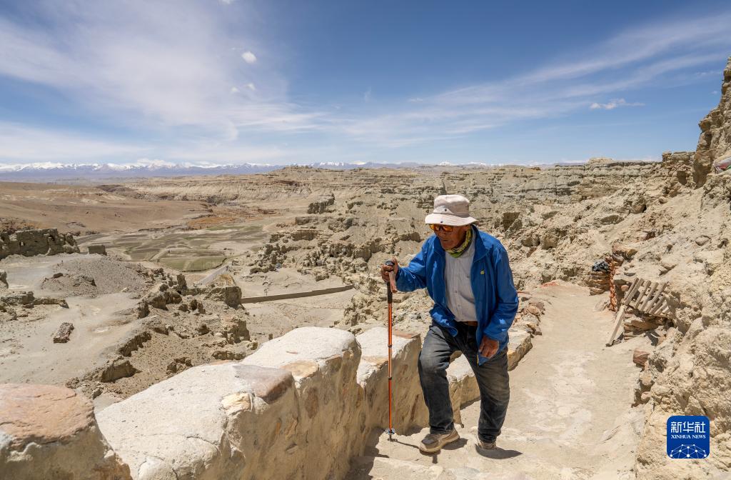 仁增旺扎老人巡查各個石窟,這是他多年來的習慣(5月26日攝)。新華社記者 晉美多吉 攝