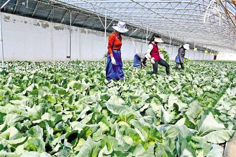 某農(nóng)業(yè)科技公司的員工在大棚里工作。 旦增蘭澤 攝