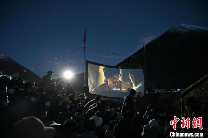 5月31日晚,西藏山南市加查縣放映露天電影。 中新社記者 趙朗 攝