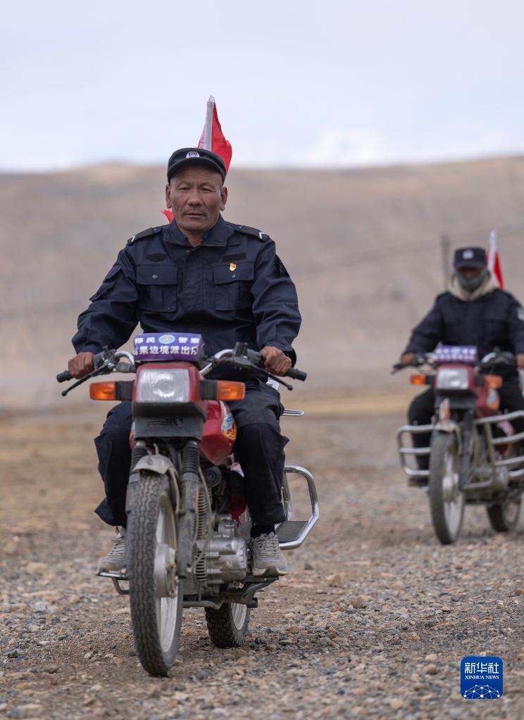 車輪滾滾,黃沙漫漫,一隊摩托車風(fēng)馳電掣般駛來……這里是平均海拔超過5000米的西藏日喀則市薩嘎縣昌果鄉(xiāng),雖然已是初夏時節(jié),但依然寒風(fēng)刺骨。50歲的昌果護邊聯(lián)防隊隊長石角帶領(lǐng)18名隊員,騎著摩托車在邊境線巡邏。