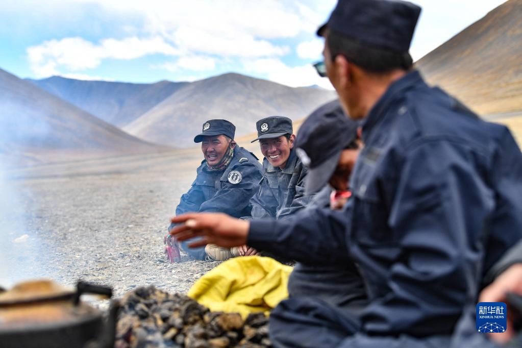 護邊聯(lián)防隊隊員在一塊空地上準(zhǔn)備午餐(6月2日攝)。新華社記者 晉美多吉 攝