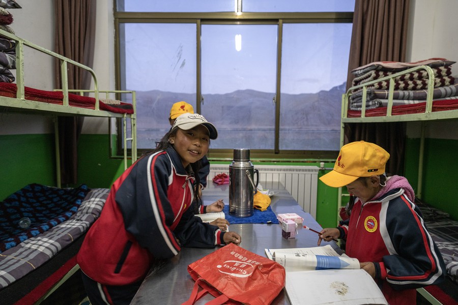 6月5日,扎西宗鄉(xiāng)完全小學(xué)的學(xué)生在宿舍學(xué)習(xí)。