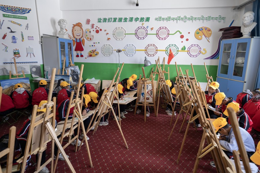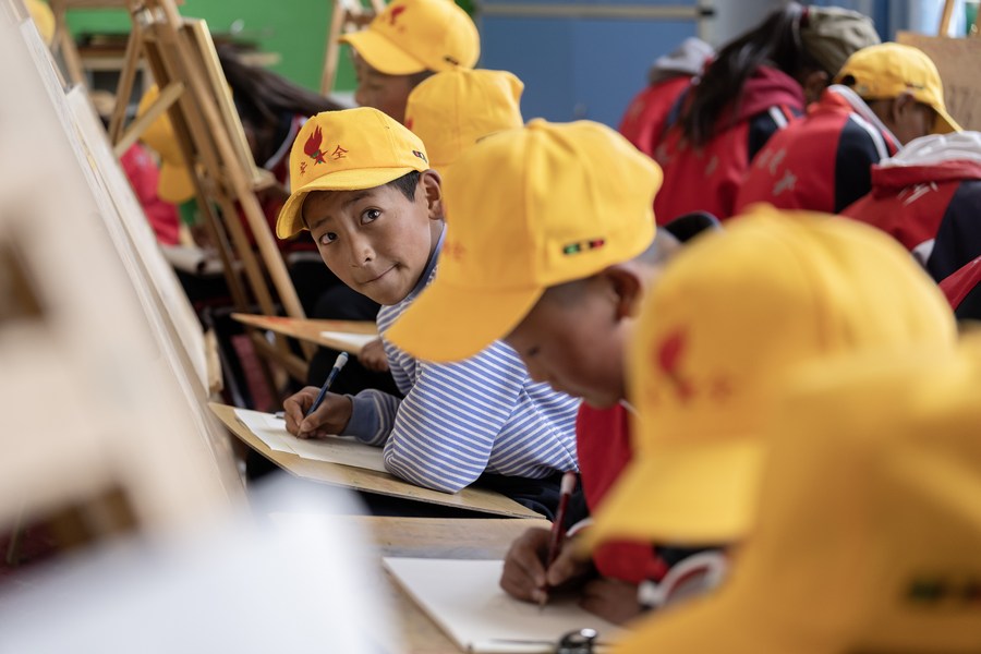 6月5日,阿旺尼曲(左一)在上美術(shù)課。
