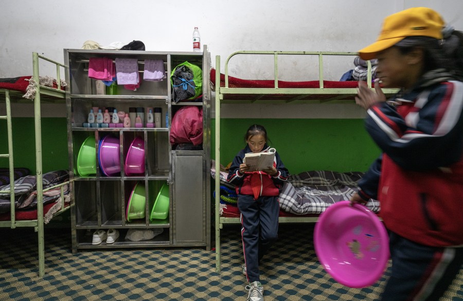 6月5日,扎西宗鄉(xiāng)完全小學(xué)學(xué)生在宿舍看書(shū)。
