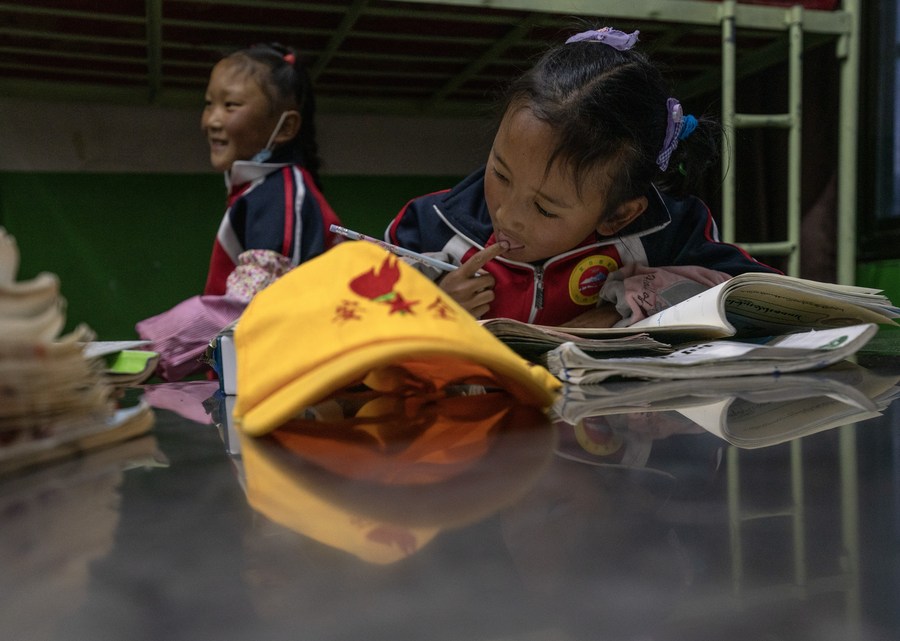 6月5日,扎西宗鄉(xiāng)完全小學(xué)學(xué)生在宿舍學(xué)習(xí)。