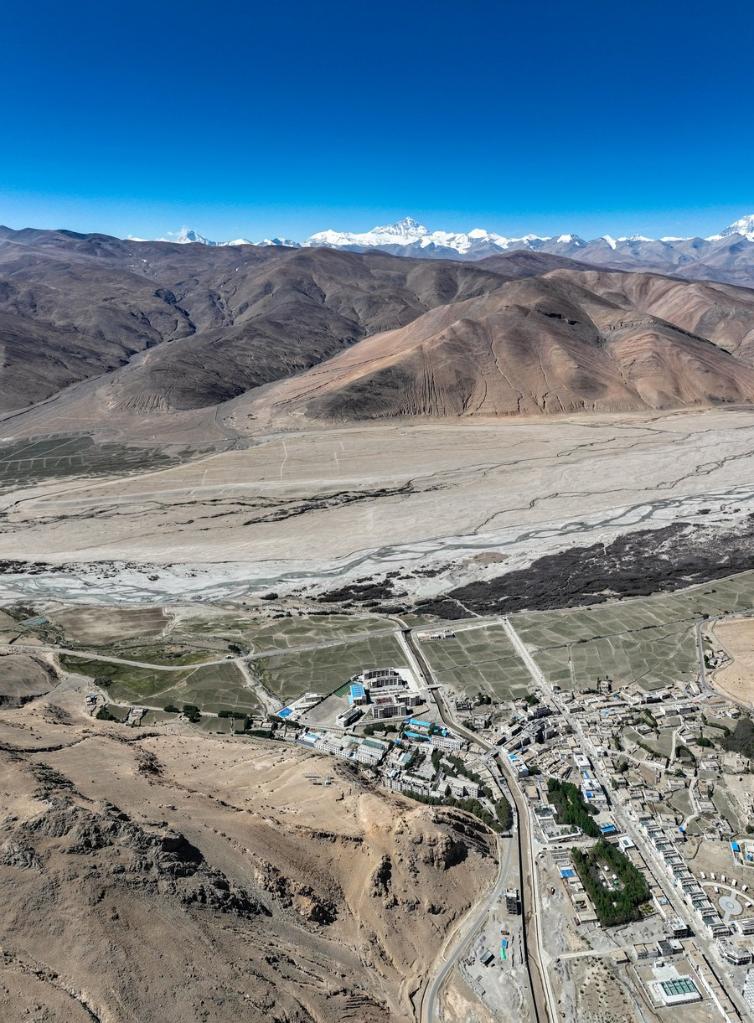 珠峰腳下的扎西宗鄉(xiāng)完全小學(xué),這里距離珠峰只有40多公里(6月5日攝,無(wú)人機(jī)照片)。