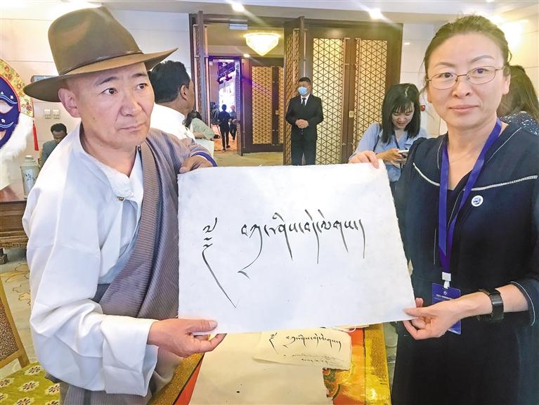 論壇會上,鋪開獨特的藏紙,手持光潤的竹筆,48歲的藏文書法家扎西頓珠鄭重寫下“扎西德勒”四個字,贈予前來參會的中外嘉賓。作為國家級非物質(zhì)文化遺產(chǎn)代表性項目藏文書法(尼赤)的代表性傳承人,扎西頓珠希望讓更多人感受并了解西藏傳統(tǒng)書法之美。“這次論壇期間,我先后向中外嘉賓送上了300多幅書法作品,我們藏族傳統(tǒng)文化能被全世界看見并受到喜愛,推動各民族交往交流交融,感到非常開心和自豪?!眲倧谋本┗貋聿痪?,閑不住的扎西頓珠又在準(zhǔn)備參加藏博會的書法作品,傳播藏文書法文化。