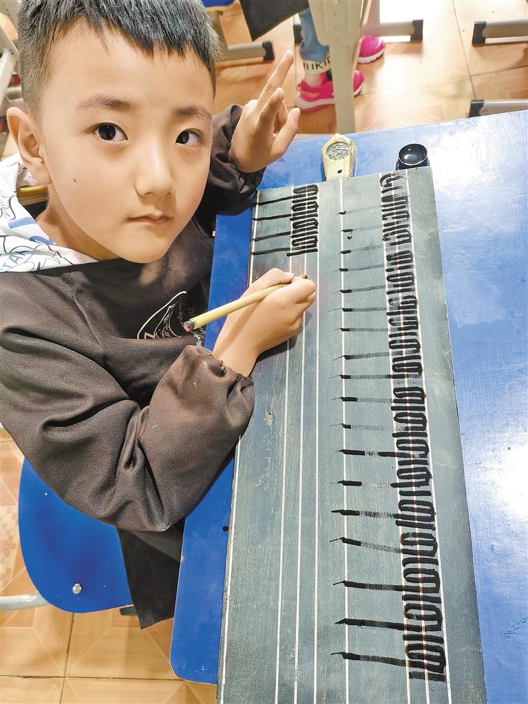 今年10歲的扎西次仁和他的同學(xué)們席地端坐,左手握木制藏文書寫板,右手持竹筆,一起認真練習(xí)尼赤派書法。扎西頓珠平時利用閑暇時間在家免費教授書法?!昂⒆幽茉趪壹壏沁z傳承人門下學(xué)習(xí)藏文書法,機會難得,我們?nèi)胰朔浅VС?,也非常榮幸。孩子也學(xué)得非常認真。”市民拉姆拿著兒子剛寫好的書法作品感慨道。