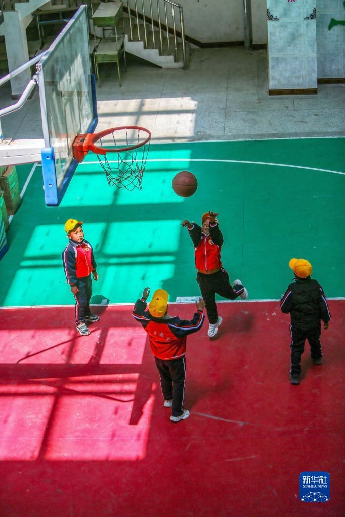 6月5日,扎西宗鄉(xiāng)完全小學(xué)學(xué)生在籃球課上投籃。新華社記者 邵澤東 攝