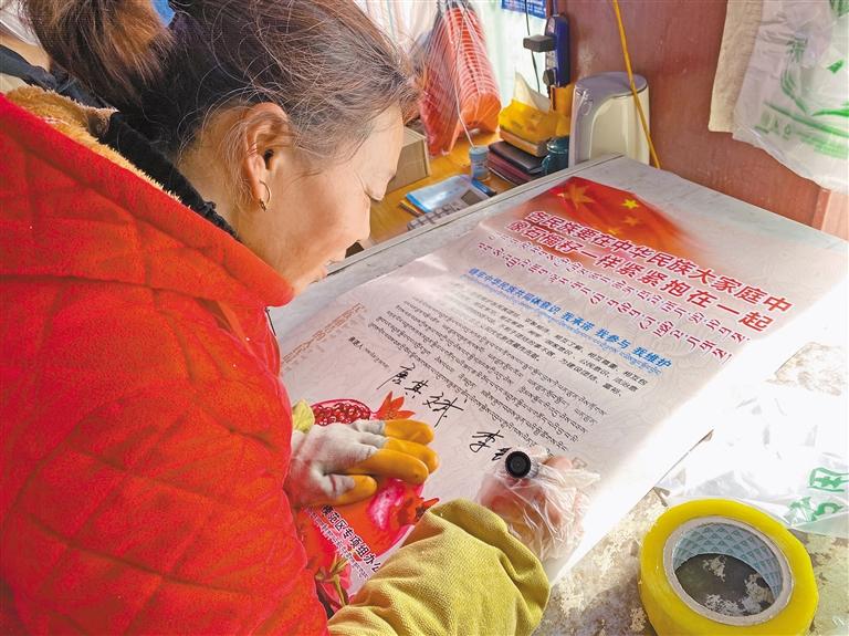 圖為那曲市索縣開展“鑄牢中華民族共同體意識(shí)·我承諾、我參與、我維護(hù)”主題活動(dòng)中,居民在簽承諾書。