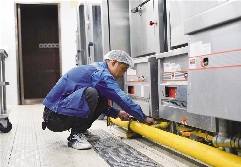 在香格里拉酒店,拉薩暖心公司工作人員對(duì)酒店的鍋爐房、廚房等地開(kāi)展了燃?xì)獍踩[患排查。拉薩暖心公司客戶服務(wù)部抄表中心主任張雁龍手拿檢測(cè)儀器,對(duì)鍋爐房、廚房?jī)?nèi)的燃?xì)夤艿浪薪涌?、燃?xì)庠罹摺④浌?、燃?xì)鈭?bào)警器、安全閥等全部進(jìn)行了檢查,并對(duì)每一項(xiàng)檢查結(jié)果進(jìn)行了登記。