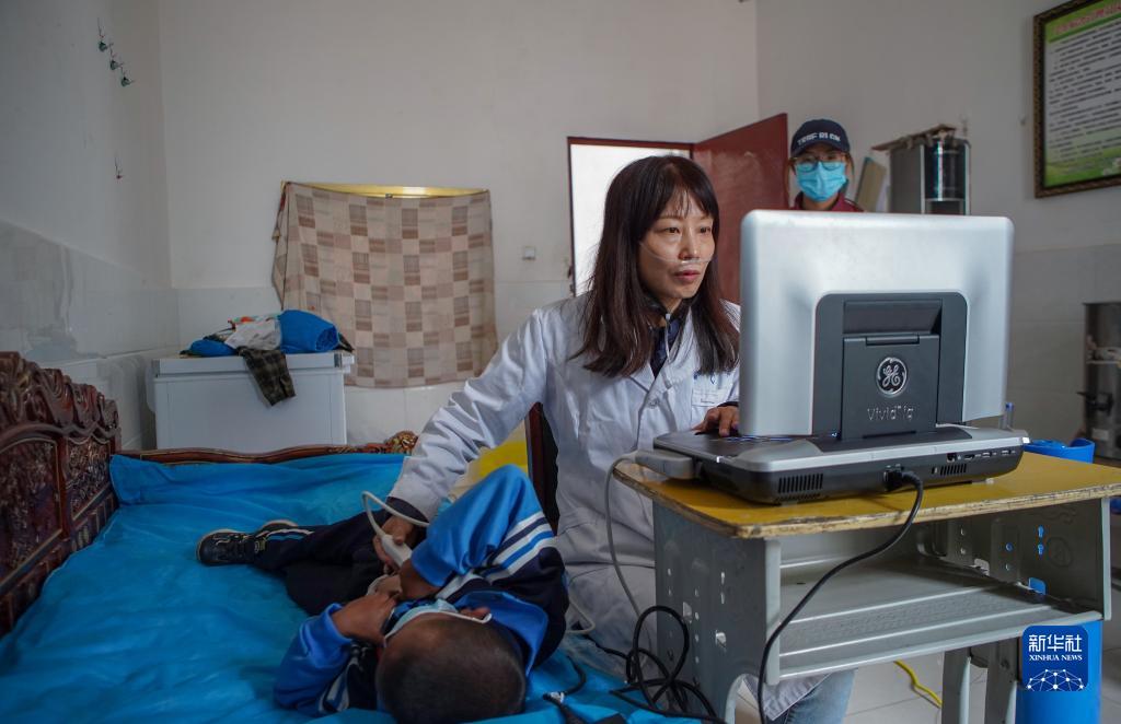 7月4日,“心佑工程”項(xiàng)目團(tuán)隊醫(yī)生給疑似患兒做心臟彩超。新華社記者 邵澤東 攝