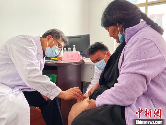 在他的專門診室外排滿了步履蹣跚的老人,膝蓋疼、腰疼、腿疼是這個診室內(nèi)聽到最多的患者主訴,為了掌握病人按壓疼痛反饋,趙勇迅速學(xué)會了藏語“疼不疼”的說法。定位、消毒、進(jìn)針、松解、出針一套動作一氣呵成,排隊的老人對這樣的治療充滿好奇和期待。